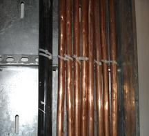 (2)固定可用銅卡,或用銅、鐵扎線綁扎固定。為做到整齊美觀,整個電纜的走向,應(yīng)全部為平行走向,轉(zhuǎn)彎處的彎曲半徑一致,固定點盡量做到整齊,且間距都必須符合規(guī)定要求。如果敷設(shè)在槽架內(nèi),同樣也應(yīng)全部整理平直,不應(yīng)出現(xiàn)交叉重疊無序堆放現(xiàn)象,彎曲處按槽架的彎曲度進行彎曲。