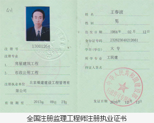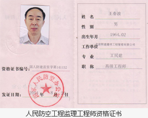王春波:1964年2月生,1986年10月畢業(yè)于哈爾濱建筑工程學(xué)院工業(yè)與民用建筑專業(yè),本科學(xué)歷,高級工程師,全國注冊監(jiān)理工程師,人民防空工程監(jiān)理工程師,全國環(huán)境監(jiān)理工程師。主管項目部管理部。