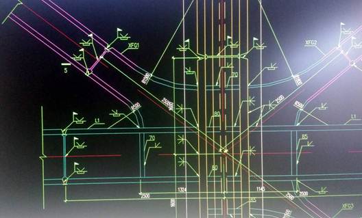 圖3;經(jīng)加工廠三次返修深化的圖紙,監(jiān)理依據(jù)設計及規(guī)范標準核查下圖,27道安裝接口全部達到上下翼板錯開200MM以上符合規(guī)范標準并報設計審批通過。