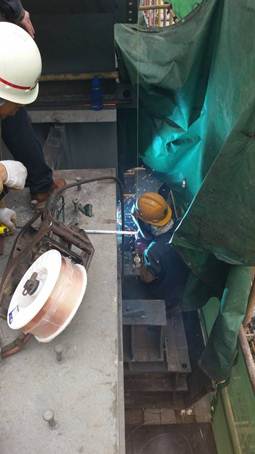 圖5經(jīng)電弧氣爆刨開,返修后焊縫經(jīng)探傷達到圖紙要求的一級焊縫標準,探傷人員進行檢測。