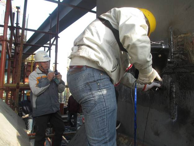 圖11;專業(yè)監(jiān)理進行探傷旁站工作
