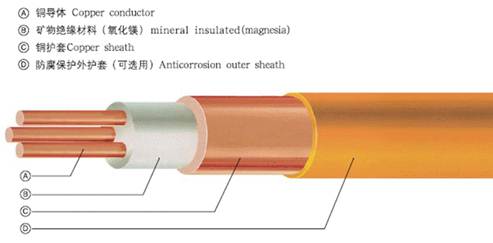 由于絕緣層氧化鎂晶體的熔點溫度遠(yuǎn)高于銅的熔點溫度,因而電纜最高正常工作溫度可達