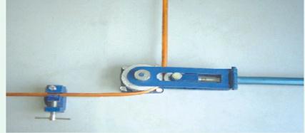 電纜的彎曲使用專用的電纜彎管器,彎曲半徑為20D, 在橋架T形彎、L型彎、穿越墻洞、電氣豎井、進出配電柜箱等彎曲度大、空間狹小處敷設(shè)時要注意敷設(shè)時應(yīng)用力均衡,不可使用普通工具或人工強行彎曲,避免免在操作中損傷電纜銅護套,電纜的彎曲示意圖如圖5所示: