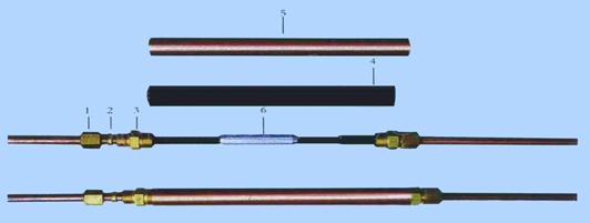 1壓蓋螺母 2壓縮環(huán) 3壓縮本體 4熱收縮絕緣套管 5銅套管 6鍍錫銅接管