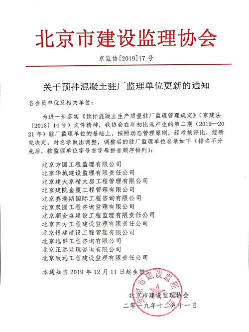 我公司進(jìn)入預(yù)拌混凝土駐廠監(jiān)理單位名錄
